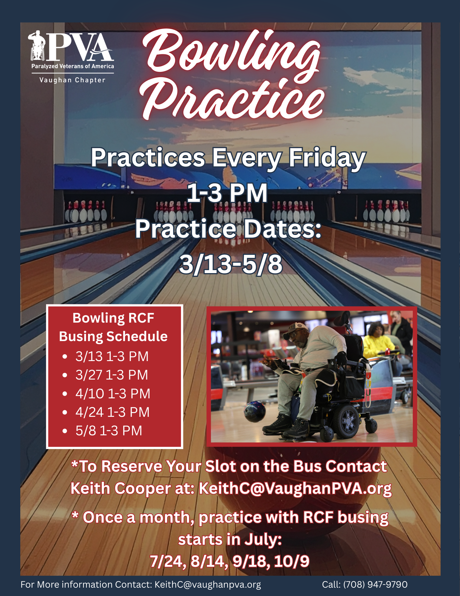 Lanes are provided by the PVA Vaughan Chapter.
